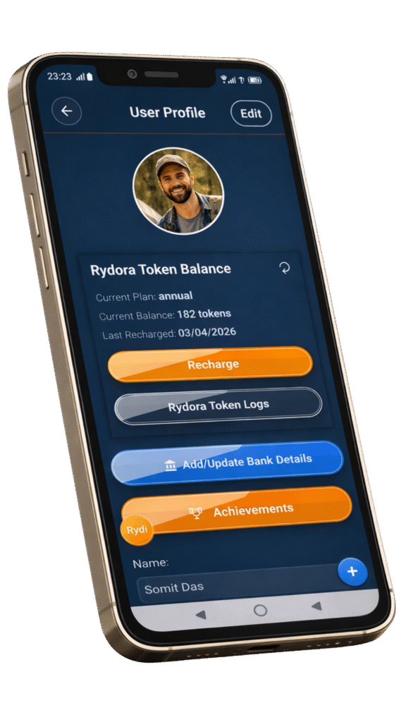 Earn and spend Rydora Tokens to unlock exclusive features and manage your ride participation. Choose flexible top-up or annual plans that fit your riding style.
